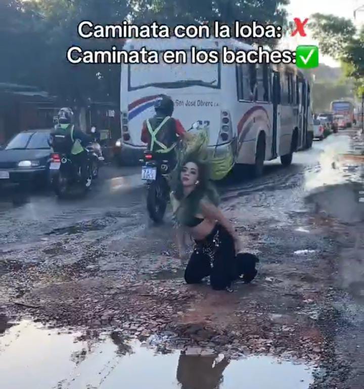 Esta vez, el viernes, la joven «Elenita» Villalba volvió a utilizar el baile como un método de protesta por el lamentable estado de la avenida Avelino Martínez.