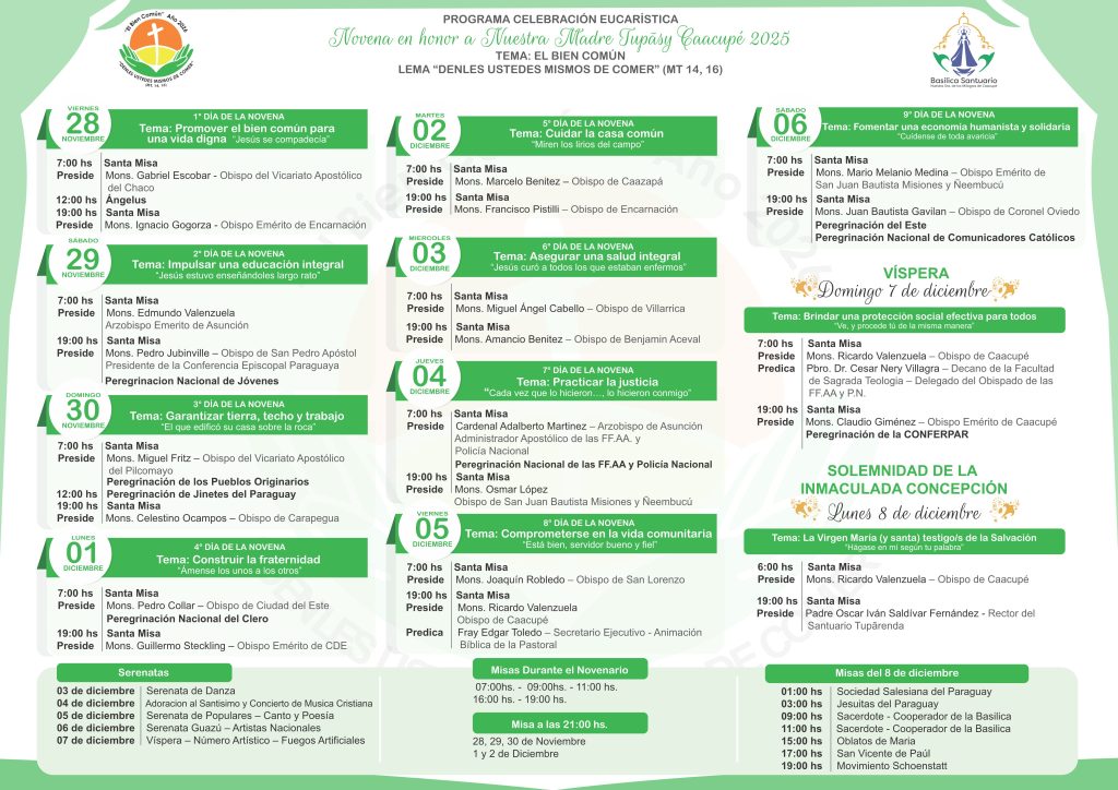 Cada día estará orientado a una reflexión distinta relacionada con el bien común, abordado desde perspectivas sociales, espirituales y comunitarias, a través de peregrinaciones temáticas y misas por obispos de diversas diócesis del Paraguay.