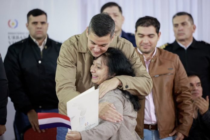 El presidente Peña destacó que, en los primeros dos años de gobierno, más de 40.000 familias paraguayas ya accedieron a una vivienda propia, un logro que consideró como «la concreción de una espera de muchos años».