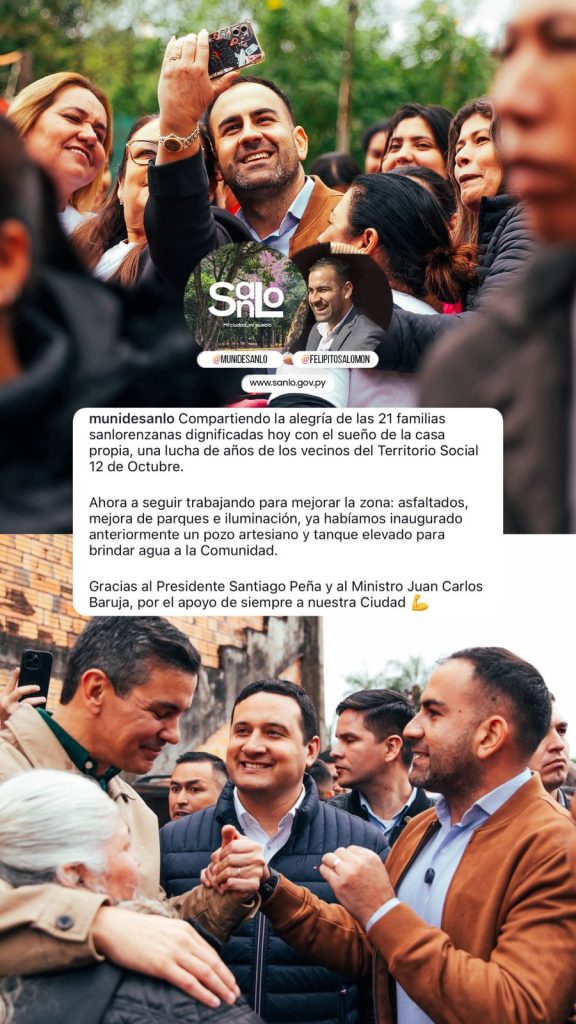 El presidente de la República, Santiago Peña, encabezó en Itauguá un acto de entrega de 235 viviendas destinadas a familias del departamento Central, de las cuales 21 corresponden al Territorio Social 12 de Octubre, de Lote Guazú. El intendente Felipe Salomón acompañó el acto.