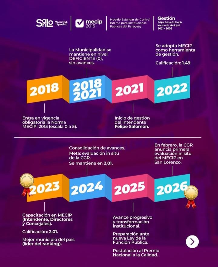 En ese contexto, publica una cronología sobre los avances de la implementación del sistema de control Modelo Estándar de Control Interno del Paraguay (Mecip).
