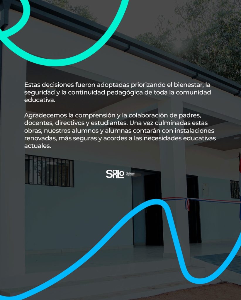 «Informamos a la Comunidad Educativa y a la ciudadanía en general que se están ejecutando importantes reformas estructurales en diversas escuelas y colegios de nuestra ciudad, con el objetivo de garantizar espacios más seguros, adecuados y confortables para nuestros niños, niñas y jóvenes», refiere el comunicado.